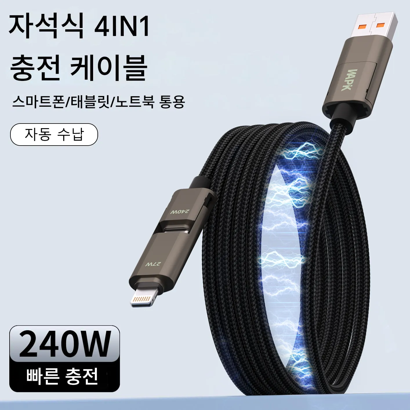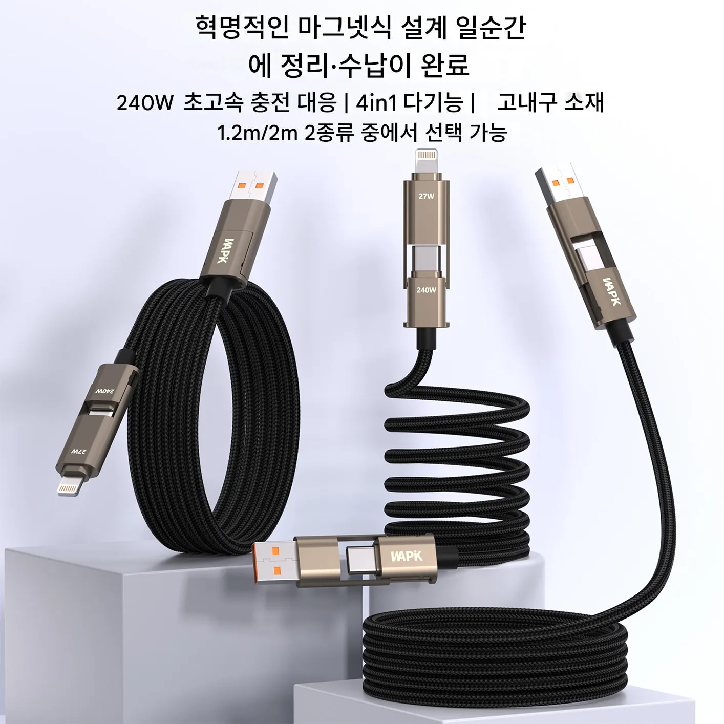 Wapik 흡착형 4-in-1 충전 케이블, ‘만능 급속 충전 신기’라 불릴 만큼 탁월함: