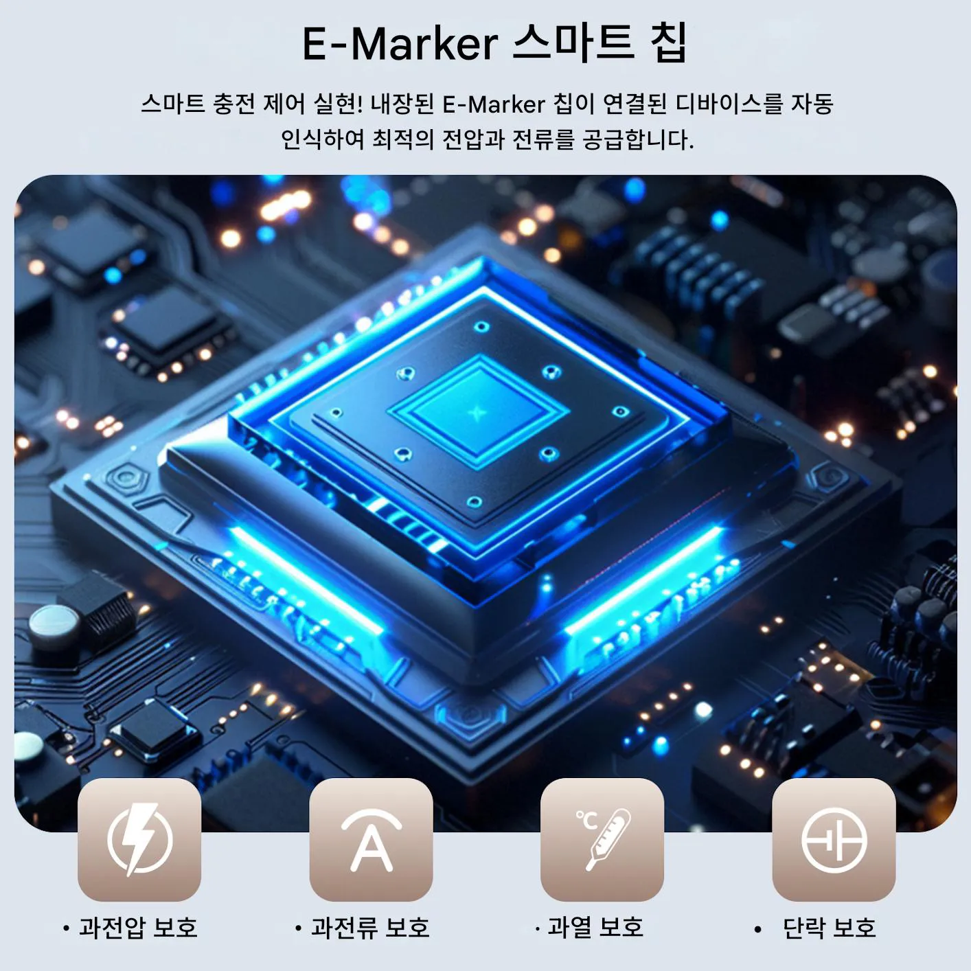 - 내장 E-Marker 칩 + 14가지 안전 보호 기능으로 기기에 맞는 전압·전류를 자동으로 조절;