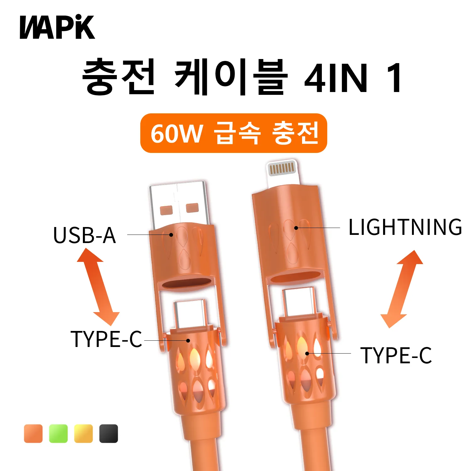 와픽 4-in-1 향기 고속 충전 케이블: 모든 기기를 위한 하나의 케이블, 이동 중에도 은은한 불빛