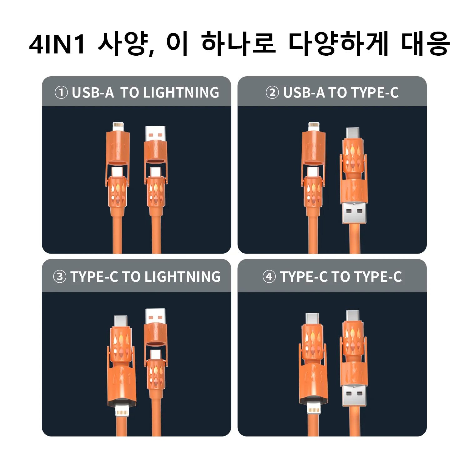 4-in-1 실리콘 데이터 케이블